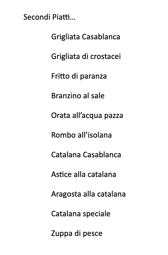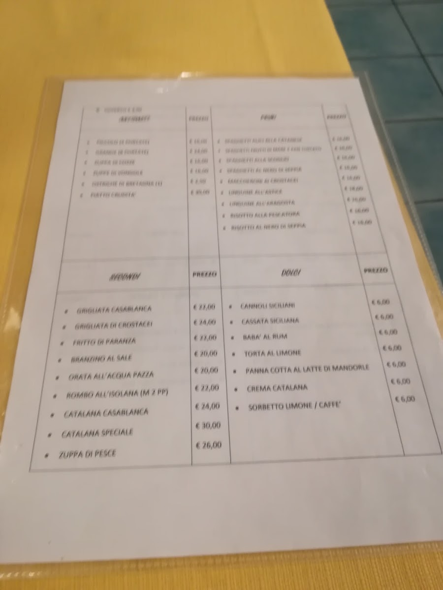Ristorante Casablanca in Parma offers a captivating menu that showcases the finest flavors of Sicilian and Italian cuisine. The standout dishes reflect a commitment to quality and authenticity. Among the must-try items is the Cassata Siciliana Prodotta Dal Proprietario, a traditional Sicilian dessert made by the owner himself, offering a perfect balance of sweetness and creaminess. For seafood enthusiasts, the Spaghetti Allo Scoglio and Linguine Allo Scoglio are exceptional choices, packed with fresh shellfish and a delicate sauce that enhances the flavors of the sea. Another favorite is the Antipasto Misto Mare, a delightful assortment of fresh seafood, and the Catalana Di Crostacei, which presents an exquisite combination of crustaceans, making it a feast for both the eyes and palate. The rich and flavorful Astice Alla CA is another crowd-pleaser, featuring lobster prepared with a unique twist that brings out the natural sweetness of the seafood. For those with a sweet tooth, the Canoli Siciliani and Dolci Siciliani deliver authentic Sicilian desserts that finish the meal on a delightful note. The restaurant also offers indulgent treats like the Cannolo Babà Cassata, blending two classic desserts into one unforgettable experience. Each dish is thoughtfully prepared, reflecting the restaurant's dedication to serving high-quality, flavorful food in a welcoming atmosphere.